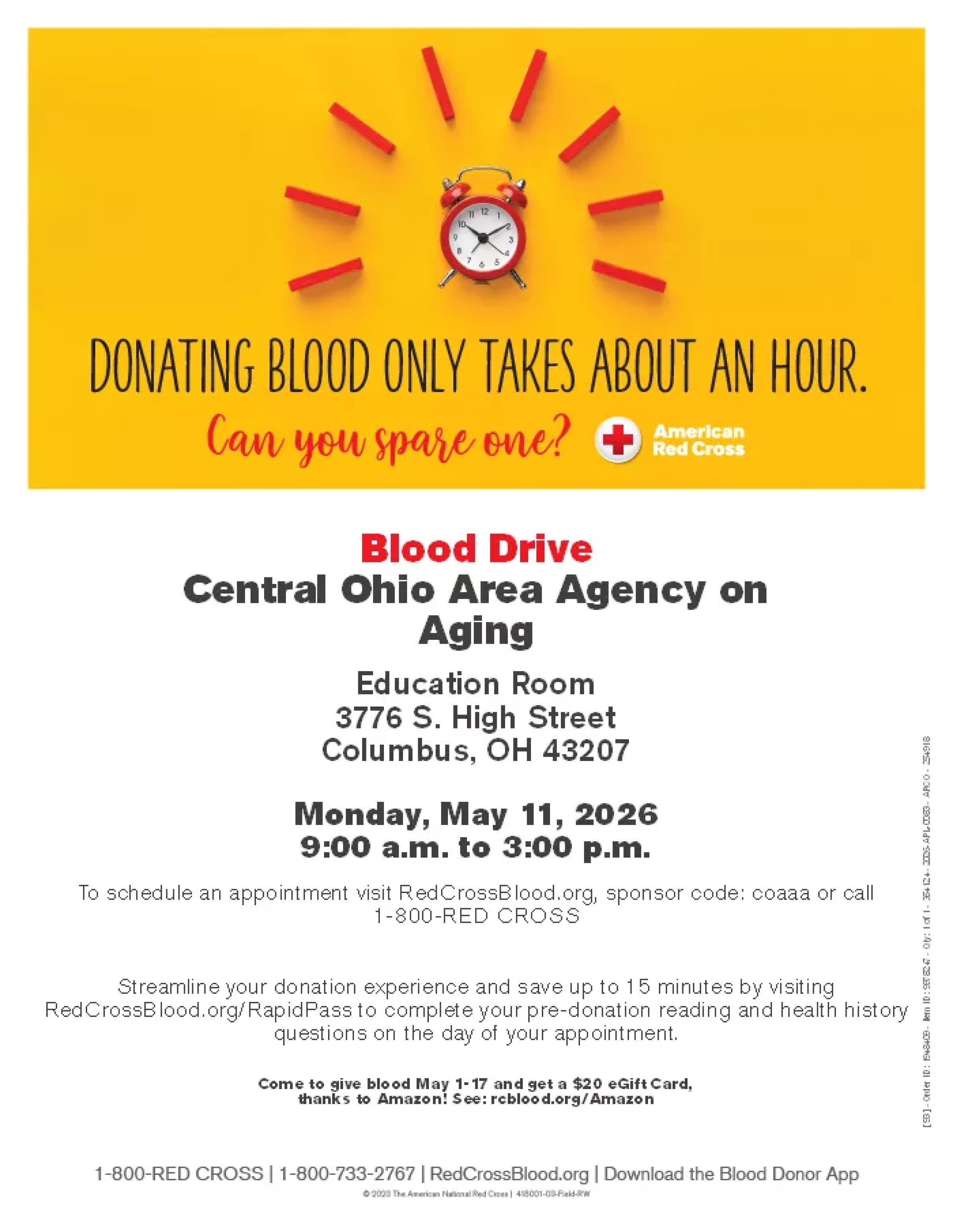 On Monday, May 11, we will be hosting a blood drive with the American Red Cross Central & Southern Ohio Region from 9:00 AM to 3:00 PM in our Education Room. Free, convenient parking will be available for all attendees. Schedule an appointment online: https://rcblood.org/4dtll1c